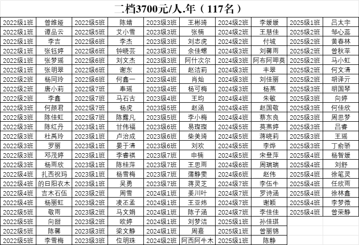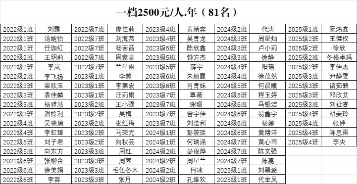2025-2026学年度国家助学金名单公示