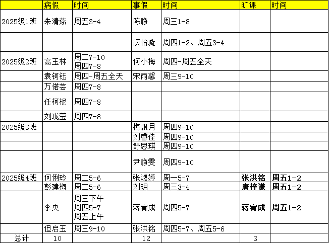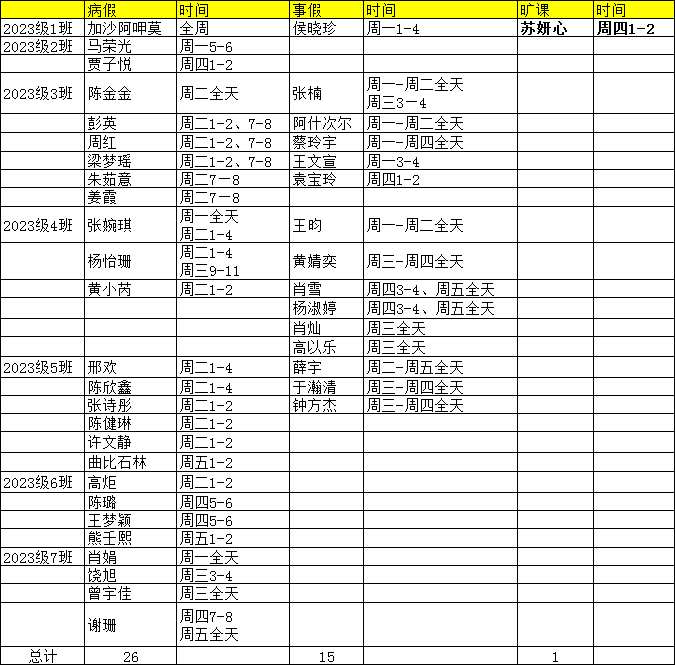 2025-2026-1第十五周员工考勤公示