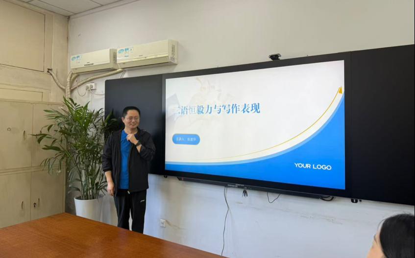 本次沙龙核心围绕二语写作研究展开。张建华结合自身博士论文及已发表成果,深入剖析“恒毅力”在二语写作中的作用机制——这一源于教育心理学的概念,被跨学科引入二语学习后,定义为“二语学习的热情与长期坚持”。他通过两项实证研究,对比分析了认知能力与非认知能力(如恒毅力、成就目标)对不同体裁(议论文、记叙文)写作成绩的影响,提出“简单任务中恒毅力更关键,复杂任务中认知能力与恒毅力需协同”的结论,还特别探讨了“表现趋近目标可能因焦虑导致写作成绩负相关”等反常规结果,为二语教学中目标设定与任务设计提供新启示。