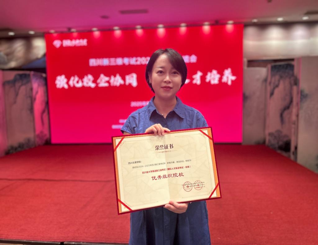 本次会议由外研社国际人才发展中心总经理冯涛主持,四川省高等教育学会高校外语专业委员会会长、四川省本科高校外语语言文学类教学指导委员会秘书长王欣教授致开幕辞,她强调了校企协同对破解人才培养与行业需求脱节、提升培养质量的关键作用。开幕式后,北京外国语大学中国外语测试中心副主任、四川新三级考委会主任韩宝成教授在主旨报告中,探讨了强化校企协同,创新育人模式,赋能全球胜任力人才培养路径。在院校探索环节,来自成都文理学院等三所院校教师代表结合案例提出 “产学研用” 一体化育人路径,分享“测评驱动育人” 经验,为多元成才路径构建提供了新思路。在之后的行业需求环节,来自同道猎聘集团等企业代表阐述了校企协同赋能人才培养核心,提出校企联合培养思路。在此次会议的表彰环节中,庞黎教师作为新葡的京集团350vip8888代表,领取了主办方授予的 “四川省大学英语新三级考试优秀组织院校奖”,这是对公司英语教学质量与考试组织工作的高度肯定。会议最后,四川省高等教育学会高校外语专业委员会王朝晖副会长总结会议时强调,四川省大学英语新三级考试的平稳推进与质量提升,离不开高校、企业与考试组织方三方的协同发力。