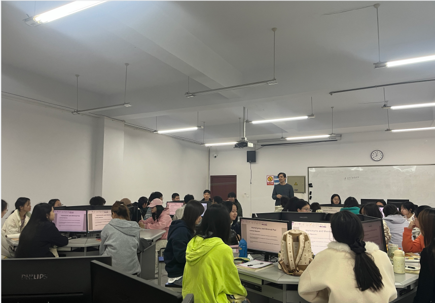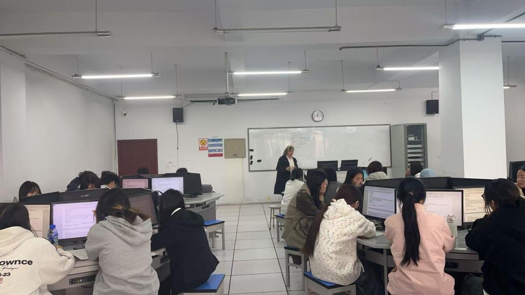 活动中,Hamed 老师为 2025 级 3 班讲授《英语口语》,以生动教法调动员工积极性,课堂氛围活跃,员工踊跃参与对话练习,展现良好英语应用能力;Margie 老师为 2024 级 4 班开展《英语演讲与辩论》教学,引导员工围绕 “国家主题” 展开多维度展示,从文化传承、地理风貌等不同视角切入,通过演讲形式锻炼逻辑表达能力;Tycho 老师在 C402 教室开设《英语语音训练》,通过发音示范讲解、模仿纠错帮助员工改善发音,提升语音准确性;Zamira 老师为 2023 级 6 班带来《英语读写工作坊》,结合商务英语专业实际材料指导员工分析商务信函写作,助力员工提升读写能力。观察人员全程记录教学环节、师生互动及员工表现,为后续交流积累素材。