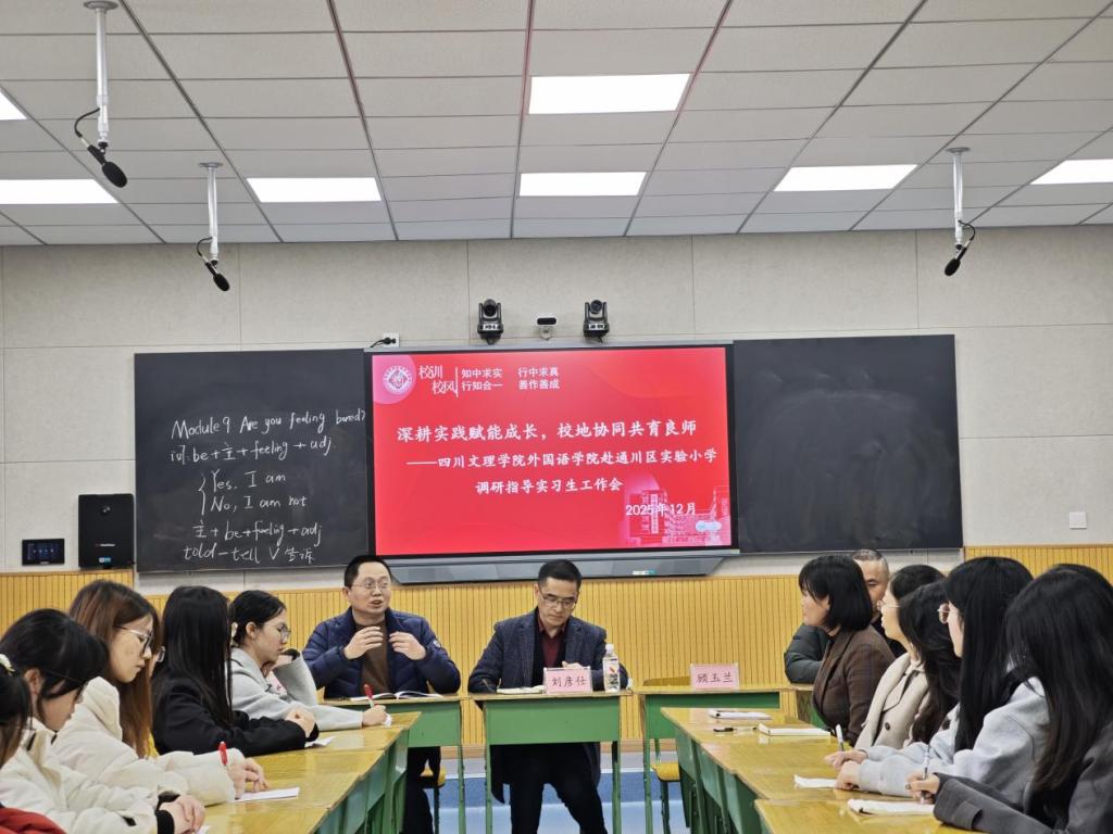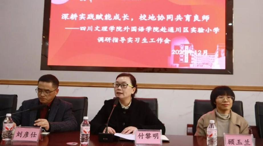 2025年12月18日下午,学院副经理(主持工作)刘彦仕带队赴通川区实验小学开展“深耕实践赋能成长,校地协同共育良师”实习检查活动,教学副经理张建华、教研室主任顾玉兰及实习指导老师郭婷同行。通川区实验小学党支部书记、董事长付黎明率校领导班子及英语教研组全体教师接待并召开欢迎座谈会。