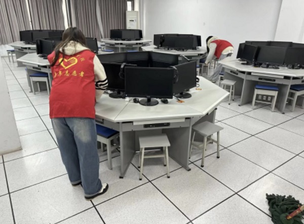 为保障教学活动安全有序开展,学院针对基础外语实验室开展安全检修志愿活动。16名志愿者在活动负责人的带领下,协助检查实验室设备运行状态、电路安全及消防设施,认真记录设备情况、清洁设备污垢,以严谨细致的态度筑牢实验室安全防线,为师生营造安全可靠的教学环境。