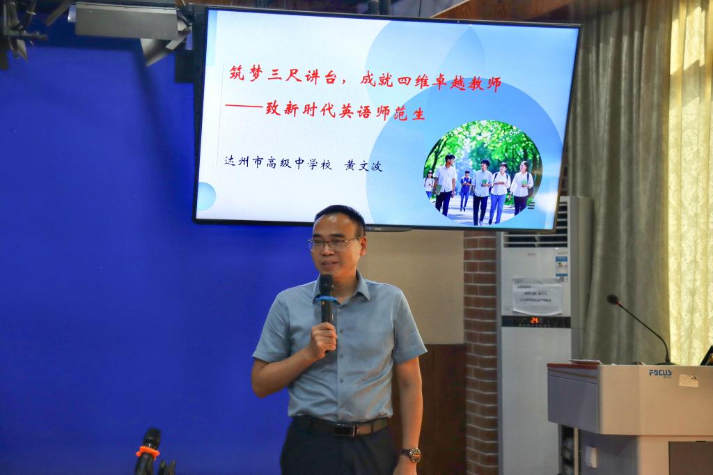 接着,黄董事长做了题为“新时代英语师范生:筑梦三尺讲台,成就四维卓越教师”的专题讲座。黄董事长结合丰富的一线教学与管理经验,系统阐释了新时代英语教师的核心素养与发展路径。为师范生从校园学习走向讲台实践提供了清晰指引,现场互动频繁,反响积极。