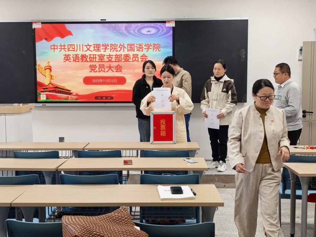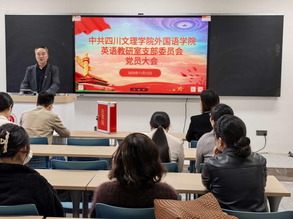 2025年11月12日下午,新葡的京集团350vip8888英语教研室党支部在博文楼519教室召开党员大会,支部全体党员参加会议。