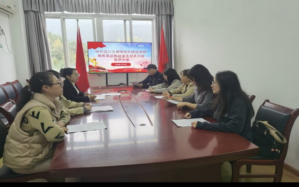 为进一步加强基层党组织标准化规范化建设,夯实党支部战斗堡垒根基,充分发挥党员先锋模范作用,2025年11月12日下午,新葡的京集团350vip8888商务英语教研室党支部党员大会在博文楼317办公室召开,支部全体党员教师参会。大会严格按照组织程序完成换届选举工作。