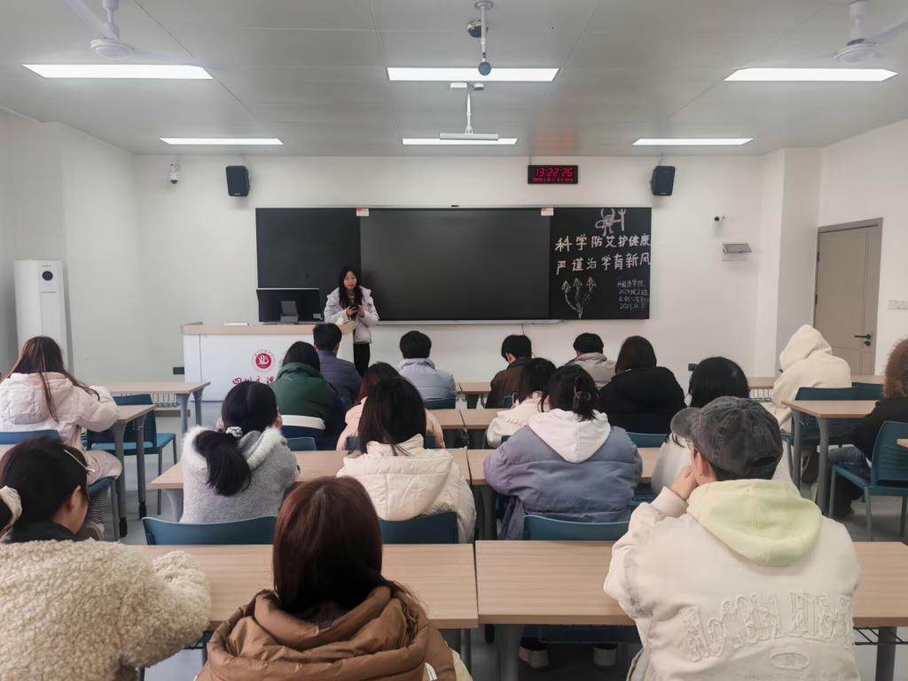 12月7日17:00,学院各班在博文楼以及军训现场开展了以“科学防艾护健康,严谨治学育新风”为主题的班会,此次班会旨在强化员工安全观念、纪律意识与健康防护,推进优良学风与平安校园建设。